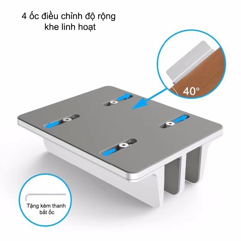 -Kích thước khe đỡ có thể điều chỉnh linh hoạt, cố định chắc chắn bằng vít. -Tặng kèm cây lục L điều chỉnh Vít.