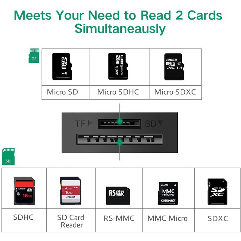 Giới thiệu Đầu đọc thẻ USB 3.0 Card Reader Hỗ trợ thẻ TF và SD UGREEN 20203 - Hàng phân phối chính hãng