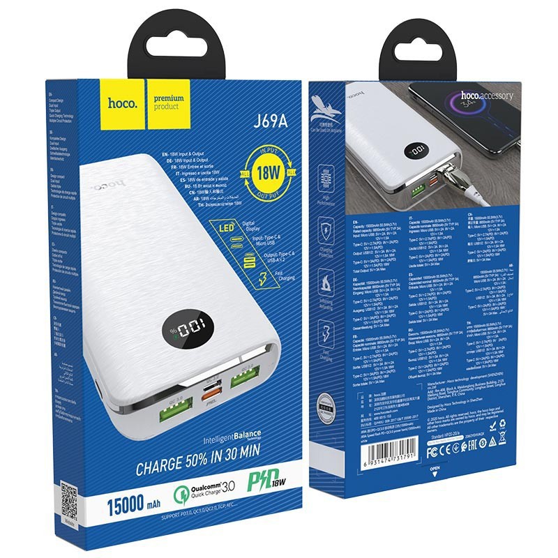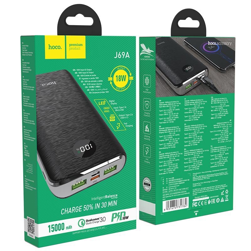 Pin sạc dự phòng Hoco J69A 15000mAh lõi Li-polymer, hỗ trợ QC3.0 và PD18W Type-C - Hàng chính hàngMÔ TẢ: