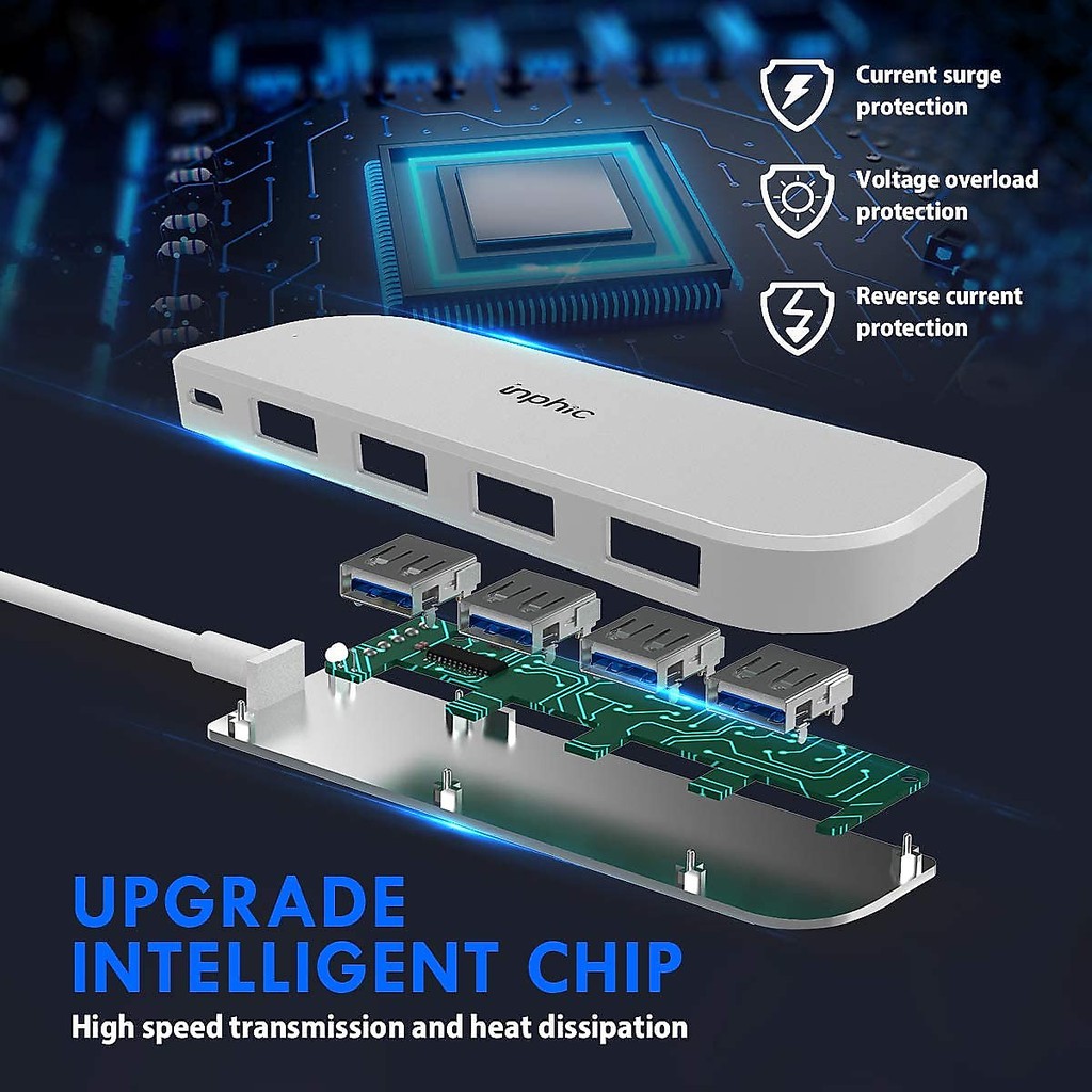 Giới thiệu Bộ chia cổng USB Hub 5 trong 1 (4 cổng USB và 1 cổng sạc Micro-USB) thương hiệu Inphic