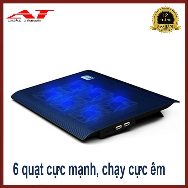 6 quạt yên tĩnh, động cơ siêu tốc độ giúp Laptop tản nhiệt nhanh chóng, đèn Led xanh.Chất liệu cứng cáp chịu lực tốt, thiết kế đẹp. Lưới kim loại chống trượt cực tốt, Có chân thay đổi góc độ thay đổi tư thế bảo vệ mắt và cổ tay.Thích hợp cho Laptop từ 15"6 inch trở xuống