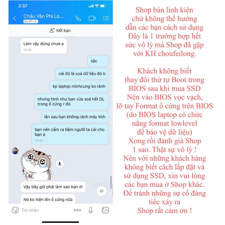 Các bạn LƯU Ý, SSD shop chỉ BÁN cho THỢ hoặc những người biết sử dụng vi tính cơ bản. Vì có rất nhiều trường hợp khách mua, không biết cách lắp vào máy hoặc sử dụng. Nếu bạn KHÔNG BIẾT cách cài win hay vào BIOS chỉnh boot như thế nào thì XIN VUI LÒNG MUA Ở SHOP KHÁC. Vì đã có trường hợp khách mua, không biết cách chỉnh boot trong BIOS, vào vọc BIOS rồi lỡ tay format ổ cứng, mất hết dữ liệu xong dánh giá Shop 1 sao. Hết sức vô lý ! Shop bán linh kiện VI TÍNH chứ KHÔNG THỂ HƯỚNG DẪN các bạn cách sử dụng. Xin lưu ý dùm !SSD đôi lúc SẼ LÀ HÀNG ĐẶT TRƯỚC chứ không có sẵn, các bạn để ý kỹ hộ mình. Nhiều lúc Shop ghi đặt trước mà các bạn đòi hỏi gửi ngay là không được đâu ạ. Mình ghi đặt trước 15 nhưng thường chỉ vài ngày là có hàng. Bạn nào cần biết ngày giờ hàng về cụ thể thì liên hệ mình nhé.