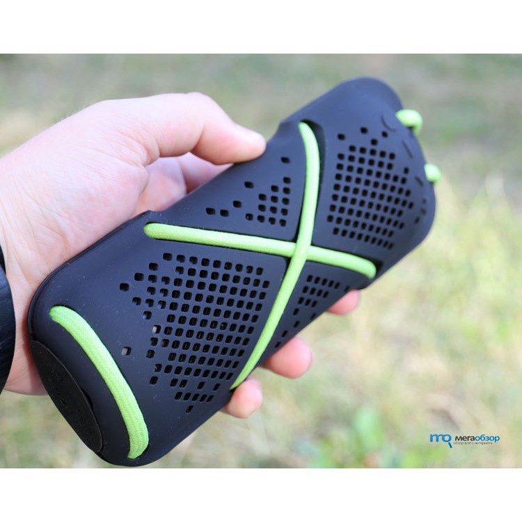 Thiết kế khá ấn tượng với sự kết hợp giữa sợi dây dù và silicon. Lớp ngoài được bao bọc bởi một lớp silicon dày tăng khả năng chống sốc, chống bụi và chống thấm nước cho sản phẩm. Bên cạnh đó, những sợi dây dù quấn quanh loa tạo thành một móc treo loa rất ấn tượng. Do đó, bạn có thể dễ dàng treo, móc loa ở bất cứ nơi đâu.