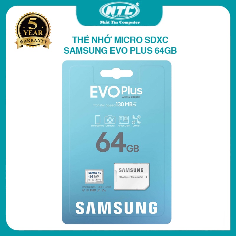 Điện Thoại & Phụ Kiện > Phụ kiện > Thẻ nhớ || Thẻ nhớ MicroSDXC Samsung Evo Plus 64GB U1 A1 130MB/s 20MB/s - Kèm Adapter (Trắng)Còn hàng
