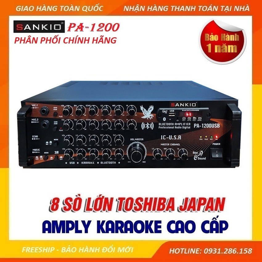 Thiết Bị Âm Thanh > Amply và đầu chỉnh âm || [Mã 254ELSALE giảm 7% đơn 300K] [BH đổi mới] Amply Karaoke Ampli USB Bluetooth Nghe Nhạc SANKIO PA-1200USBCòn hàng