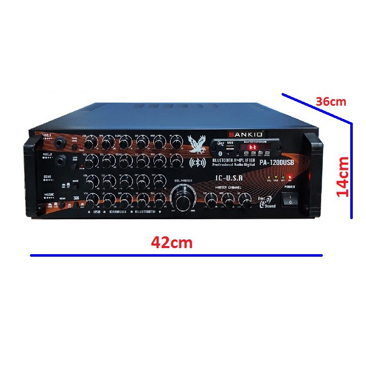 Amply Karaoke Ampli USB Bluetooth Nghe Nhạc SANKIO PA-1200USBThông số kĩ thuật của Amply karaoke SANKIO 1200USB Bluetooth :