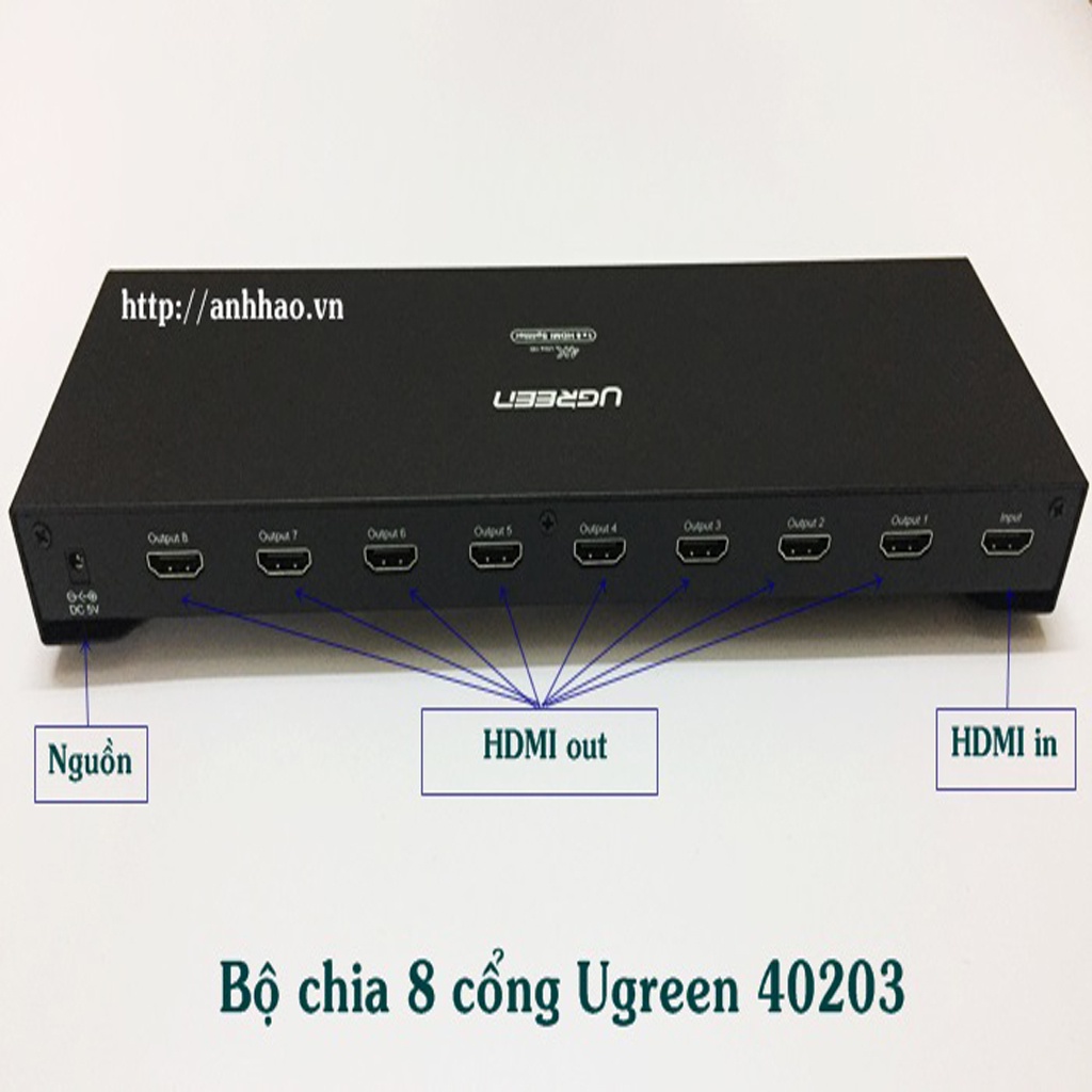 Mô Tả Sản Phẩm Bộ Chia 1 HDMI Ra 8 HDMI Chính Hãng Ugreen 40203 Cao Cấp- Bộ Chia 1 HDMI Ra 8 HDMI Chính Hãng Ugreen 40203 Cao Cấp là thiết bị cho phép người dùng kết nối bất kì nguồn phát HD nào như Android TV Box, PC, Laptop, đầu phát HD,...kết nối cùng lúc với 8 màn hình trình chiếu chất lượng cao HDTV; đồng thời xuất tín hiệu ra 8 cổng cùng lúc với chất lượng tín hiệu cực kì ổn định, sắc nét, không hề bị suy giảm