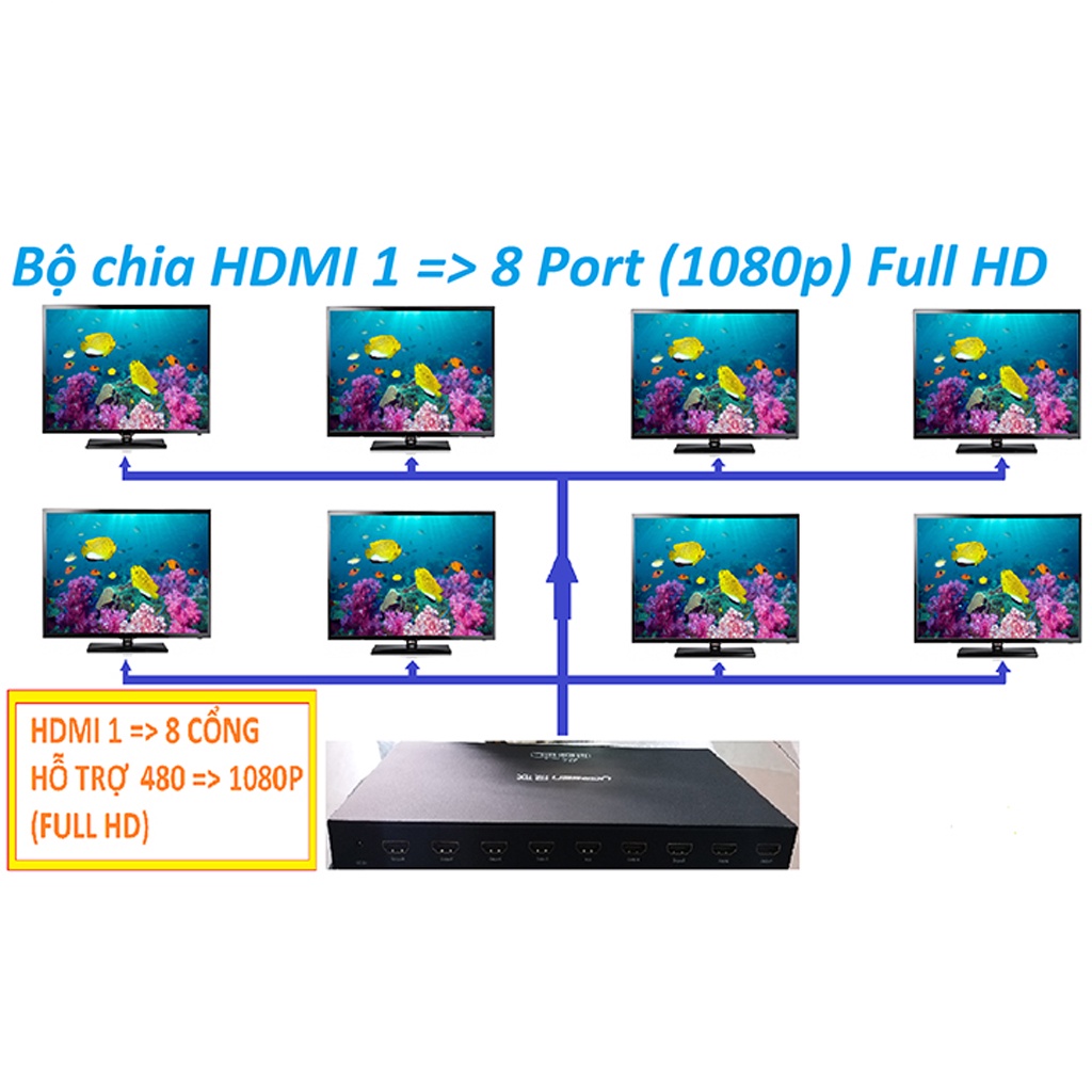 - 1 nguồn HDMI ra 8 đầu HDMI cùng một lúc, mà không bị mất tín hiệu.