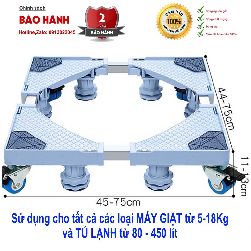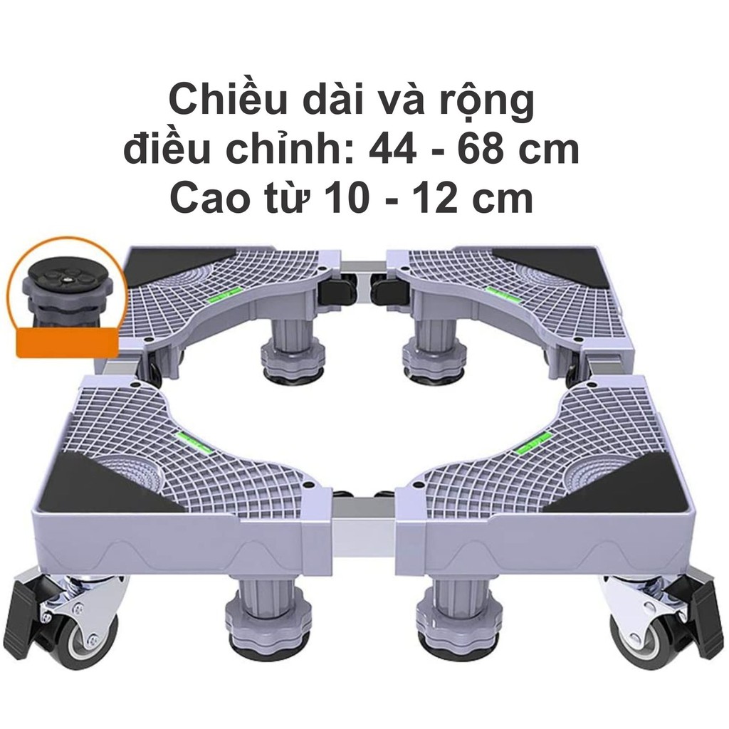 Chân đế có thể thay đổi được cả chiều dài và chiều rộng tùy chỉnh theo kích thước máy giặt, tủ lạnh.