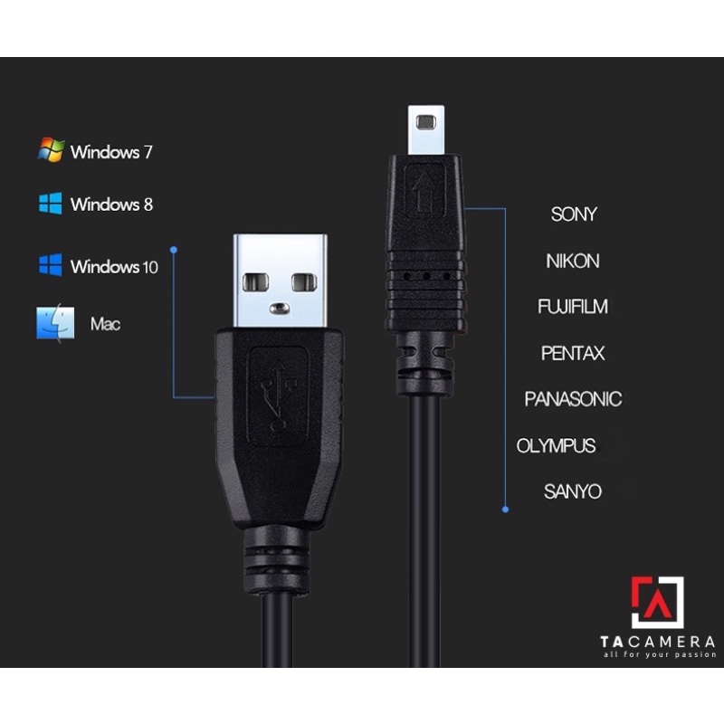 TA Camera: Dây Cáp USB 2.0 To Mini-B 8-Pin - Chụp Ảnh Flatlay Bằng Liveview - Dài 10m- Độ dài: 10m
