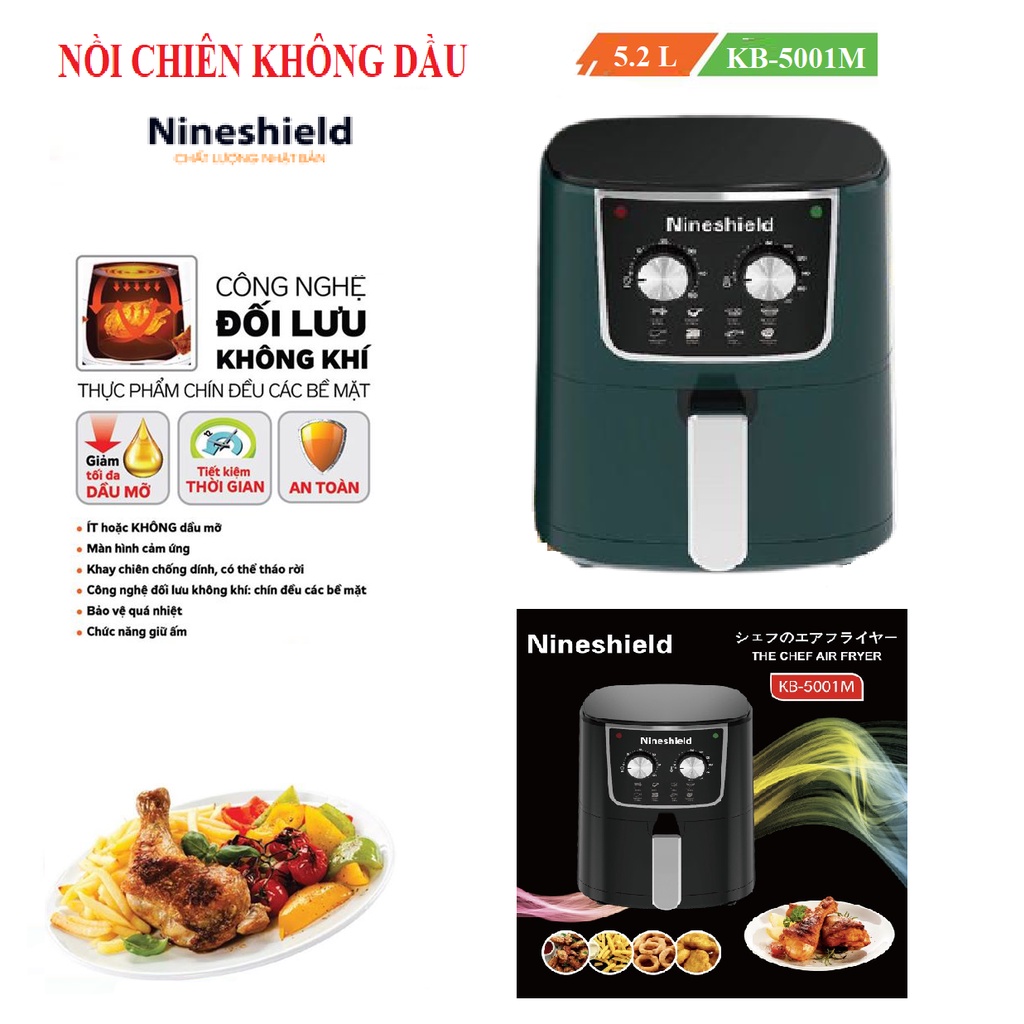 Thiết Bị Điện Gia Dụng > Đồ gia dụng nhà bếp > Nồi chiên không dầu || [Mã 254ELSALE giảm 7% đơn 300K] [ Hàng sẵn] NỒI CHIÊN KHÔNG DẦU 5.2L NINESHIELD KB-5001M CÔNG SUẤT 1350WCòn hàng