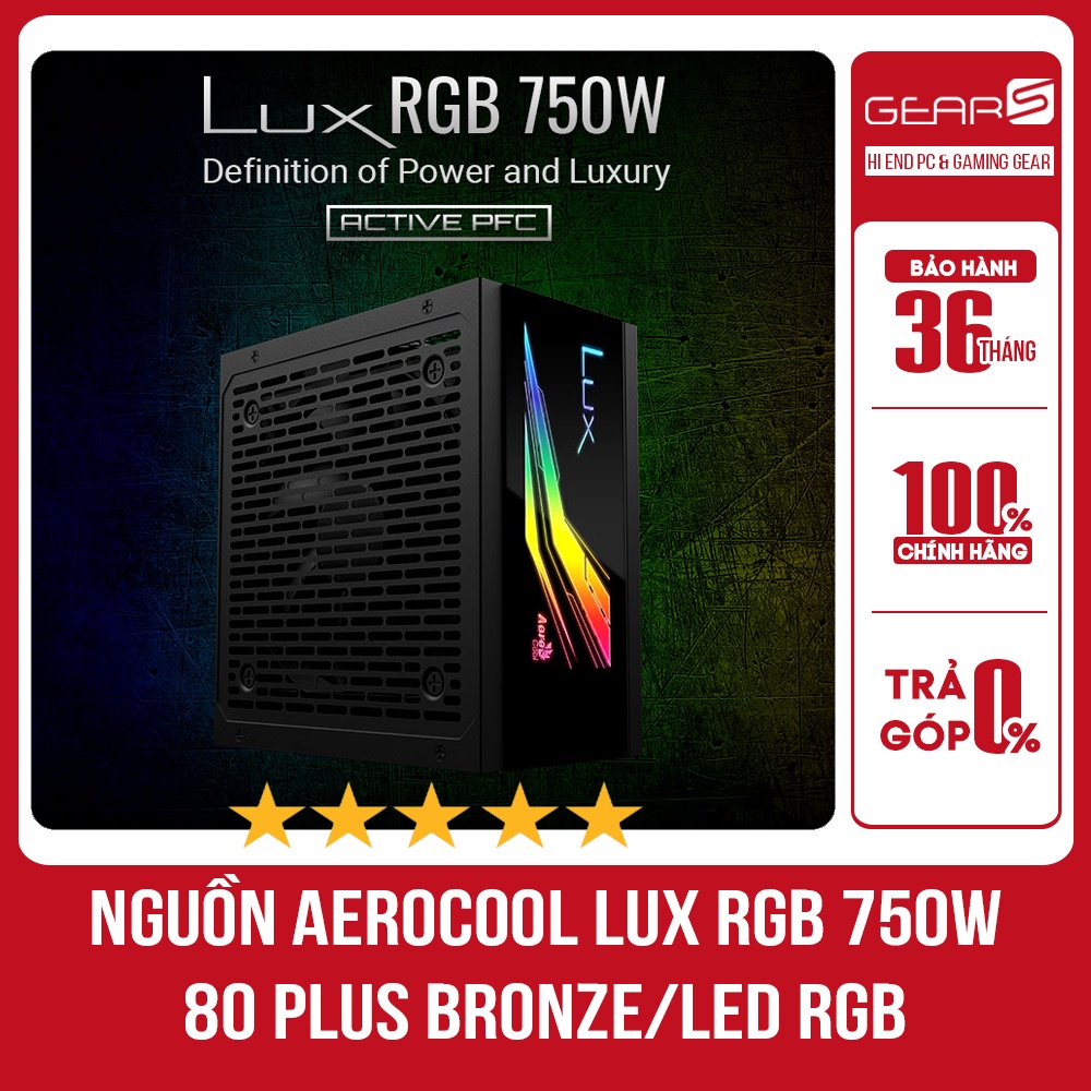 Máy tính & Laptop > Linh Kiện Máy Tính > Nguồn Máy Tính || [Mã 254ELSALE giảm 7% đơn 300K] Nguồn Máy Tính Aerocool Lux RGB 750W 80Plus Bronze Chính Hãng BH 36 ThángCòn hàng