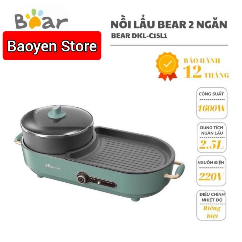Lẩu nướng Đa năng Bear Bear DKLC15L1, chính hãng, bảo hành 12 tháng!