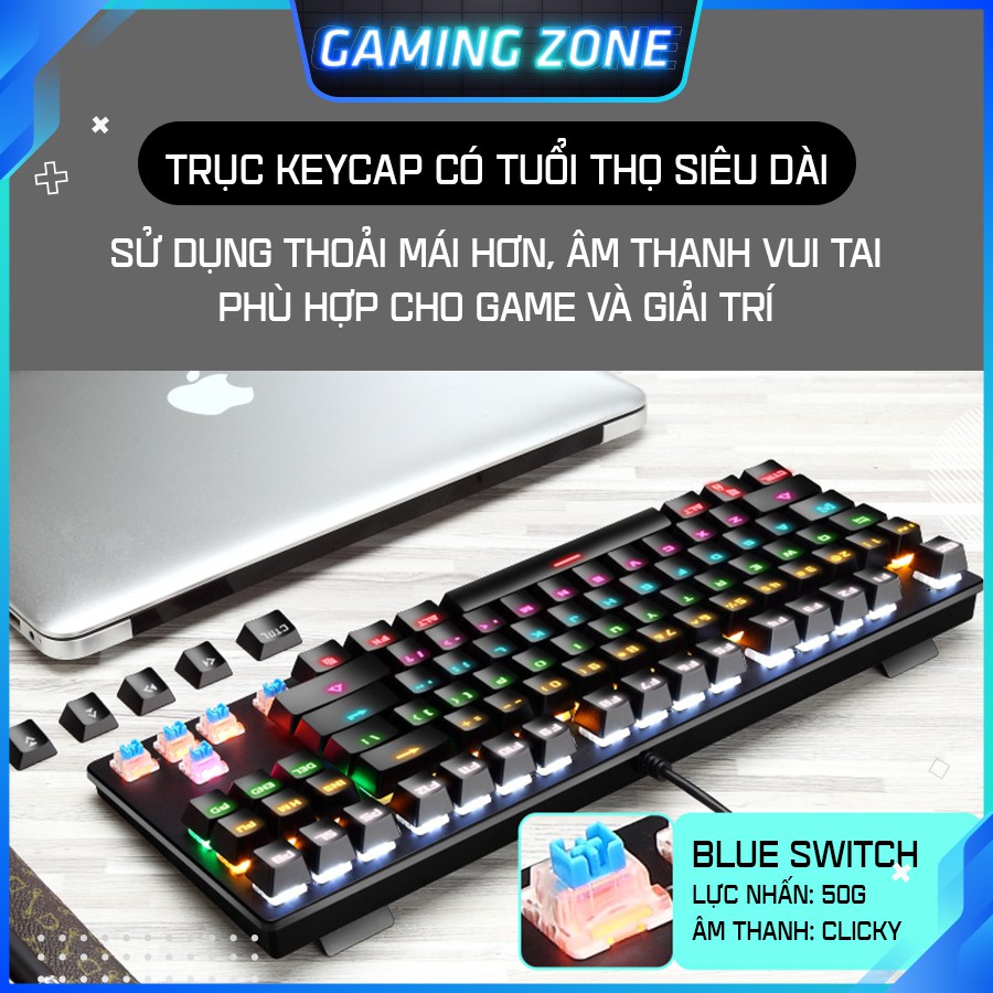 - Với 4 màu sắc thời trang và trẻ trung, tuyệt đẹp và Charming. Bàn phím cơ 87 phím tiêu chuẩn, ký tự và ánh sáng siêu đẹp.