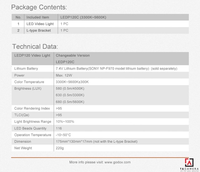 TA Camera: Đèn LED Godox P120CPhù hợp cho đám cưới, chụp phóng sự chuyên đề, chụp ảnh sản phẩm, báo ảnh và quay video...