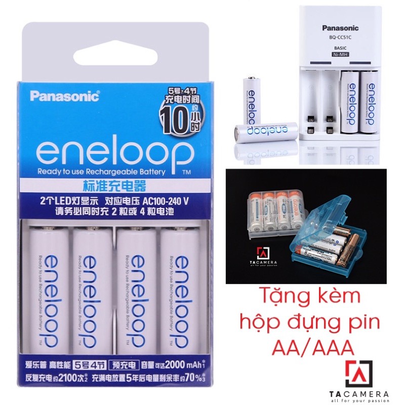 TA Camera: Combo 4 pin + sạc Eneloop Panasonic BQ-CC51CBộ 4 viên pin AA Trắng