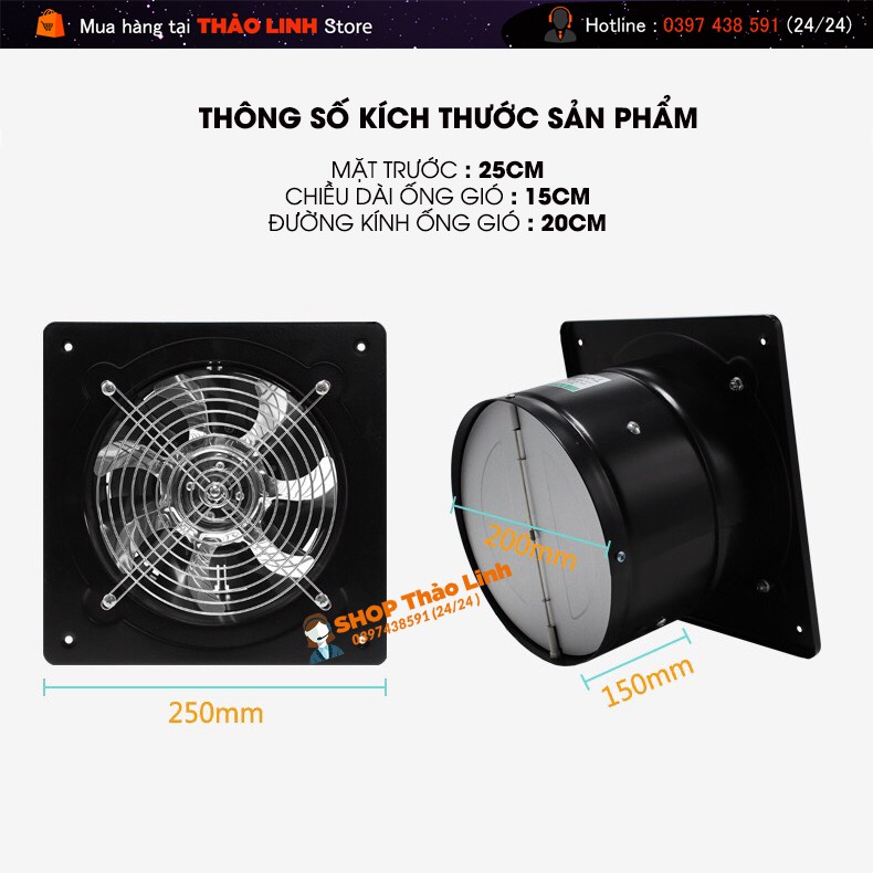 + Kích thước sản phẩm : Mặt 25cm x ống gió 20cm x chiều dài ống gió 15cm