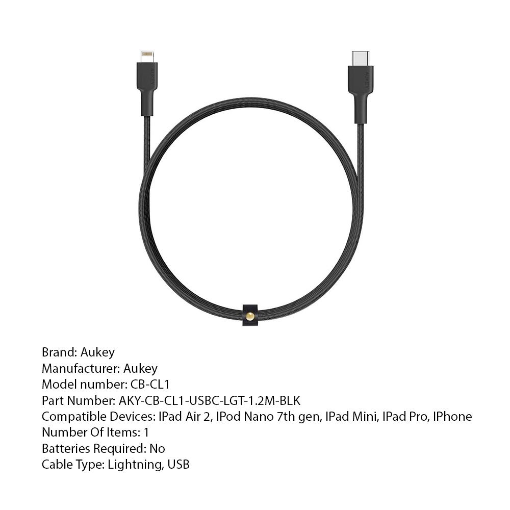 Part Number: AKY-CB-CL1-USBC-LGT-1.2M-BLK