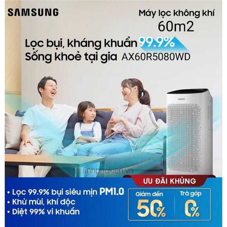 Thiết Bị Điện Gia Dụng > Thiết bị điện gia dụng nhỏ > Thiết bị xử lí không khí > Máy lọc không khí || [Mã 44ELSALE1 giảm 5% đơn 3 Triệu] Máy lọc không khí 60m2 Samsung AX60R5080WD/SV - Hàng chính hãngCòn hàng