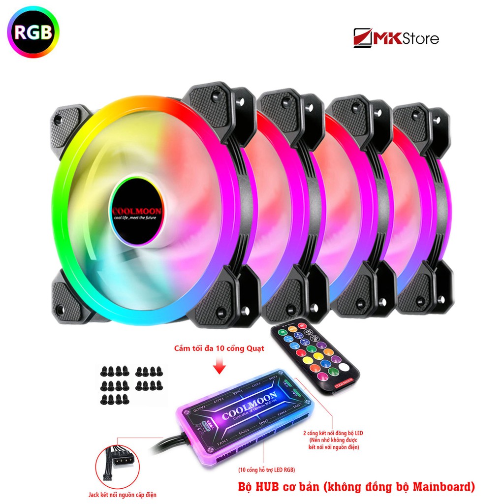 Máy tính & Laptop > Linh Kiện Máy Tính > Quạt và Tản Nhiệt || [Mã 44ELSALE2 giảm 7% đơn 300K] Bộ 4 Quạt LED RGB Fan Coolmoon v2 Dual Ring Kèm HUB + Điều KhiểnCòn hàng