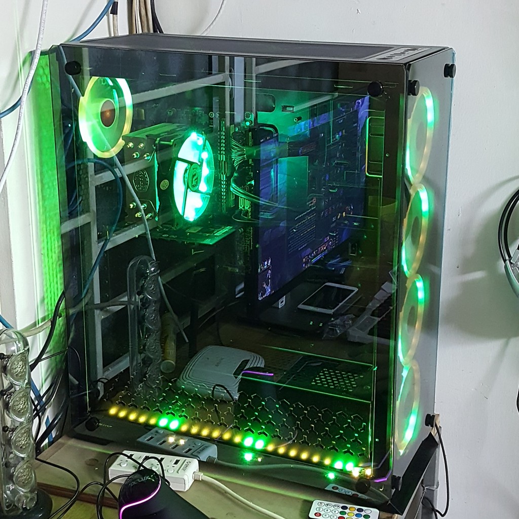 - Sản phẩm bao gồm: 04 Quạt Coolmoon Dualring RGB, 01 HUB (có thể lắp tối đa 10 Fan), 01 Điều khiển màu sắc từ xa, bộ đủ ốc bắt Fan