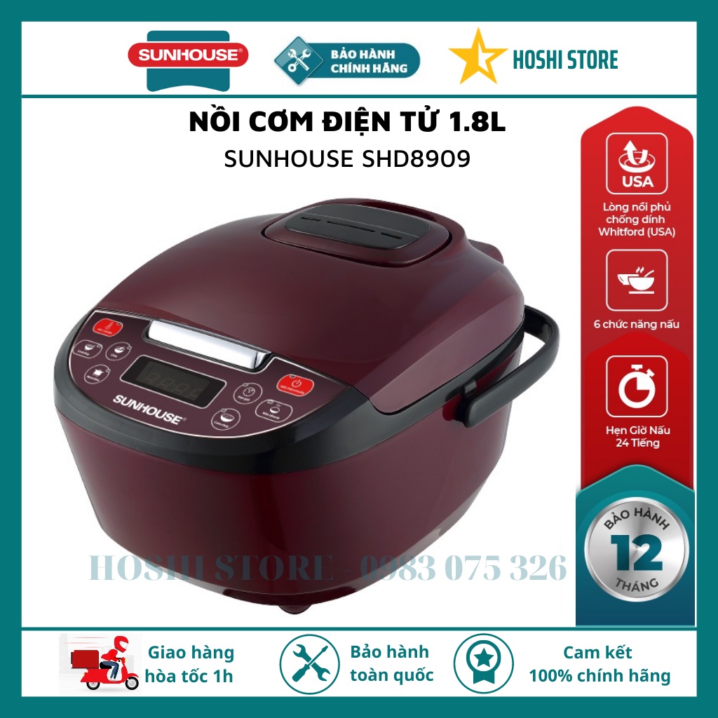 [Mã ELHADEV giảm 4% đơn 300K] [BẢO HÀNH 12 THÁNG] Nồi cơm điện tử SUNHOUSE 1.8L SHD8909
