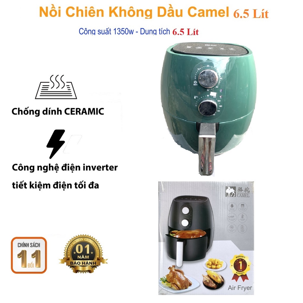 Thiết Bị Điện Gia Dụng > Đồ gia dụng nhà bếp > Nồi chiên không dầu || [Mã 44ELSALE2 giảm 7% đơn 300K] NỒI CHIÊN KHÔNG DẦU CAMEL 6.5 LÍT THIẾT KẾ THÔNG MINH CÔNG SUẤT 1350WCòn hàng