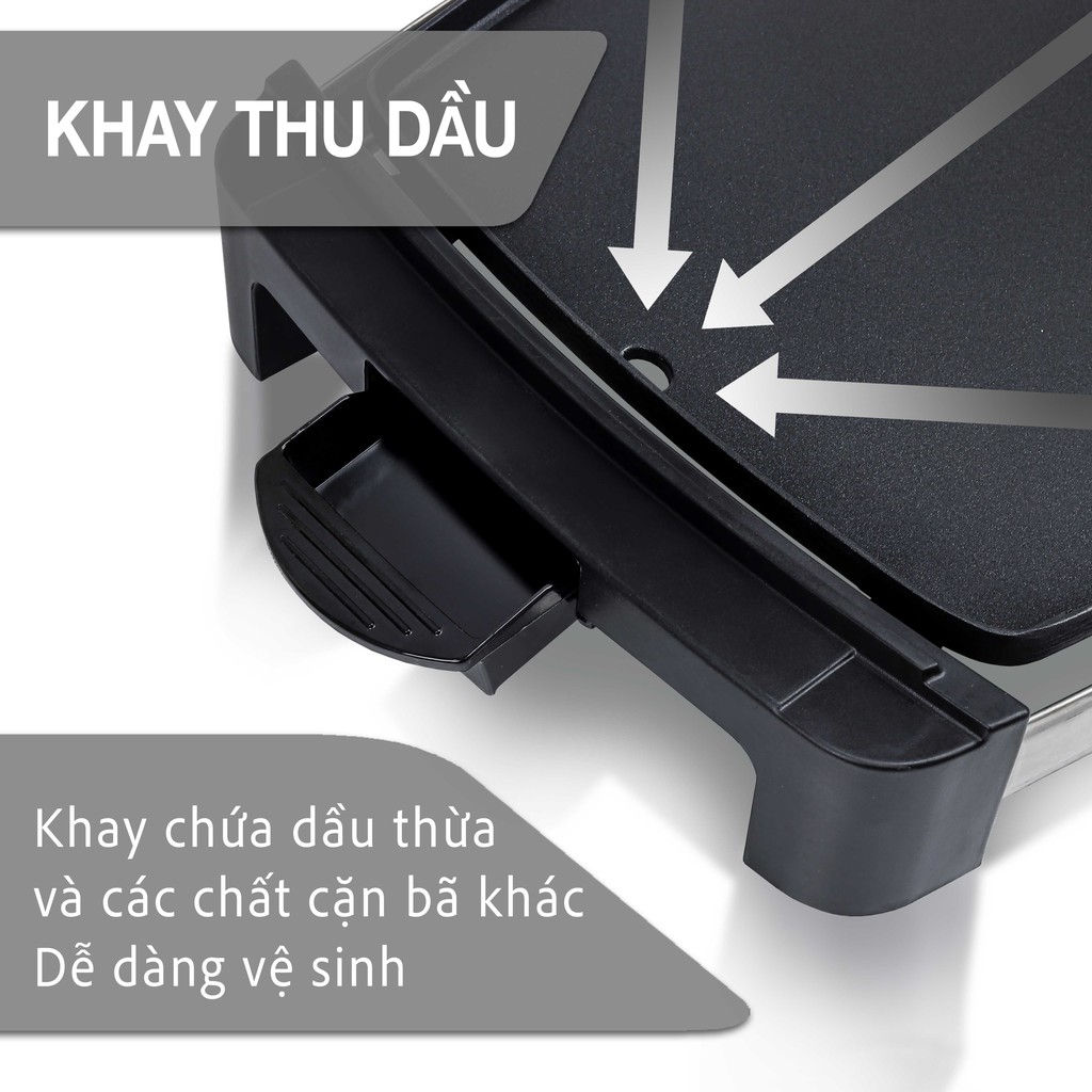 - Bề mặt có lỗ thoát dầu loại bớt dầu thừa; có khay đựng dầu thừa