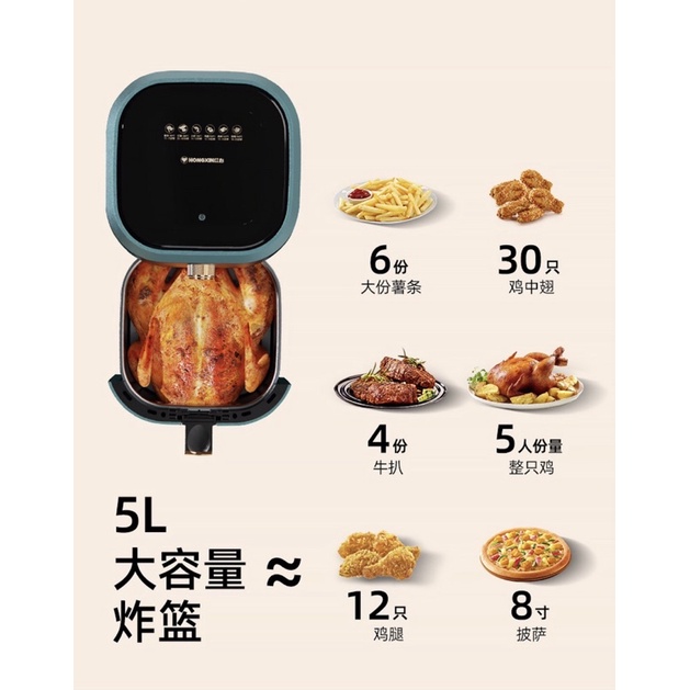Thiết Bị Điện Gia Dụng > Đồ gia dụng nhà bếp > Nồi chiên không dầu || [Mã 44ELSALE2 giảm 7% đơn 300K] Nồi chiên không dầu Hongxin 5l màu xanhCòn hàng