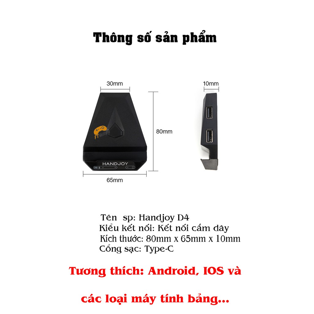 Handjoy D4 | Bộ Chuyển đổi chơi game bàn phím chuột dành cho điện thoại máy tính bảng📣📣Lưu ý: Sp không hỗ trợ điện thoại chip Mediatek và IOS 13.4 đổ lên.
