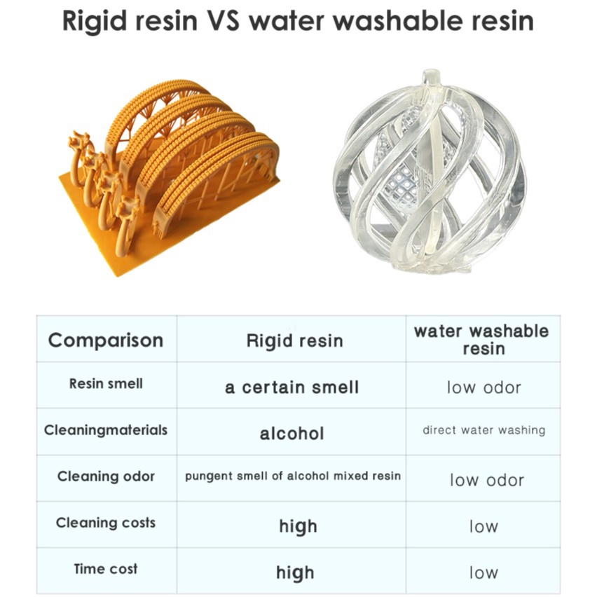 Nhựa in 3d Esun Water Washable Resin (Rửa nước) cho máy in 3d LCD 0.5kg/Chai_Có thể rửa được bằng nước & mùi thấp hơn: Dễ dàng làm sạch, bạn có thể trực tiếp làm sạch bản in bằng nước, không có mùi hăng, giúp bảo vệ cơ thể bạn khỏi tiếp xúc với cồn và các dung môi công nghiệp khác, kích ứng da thấp, nâng cao hiệu quả in.