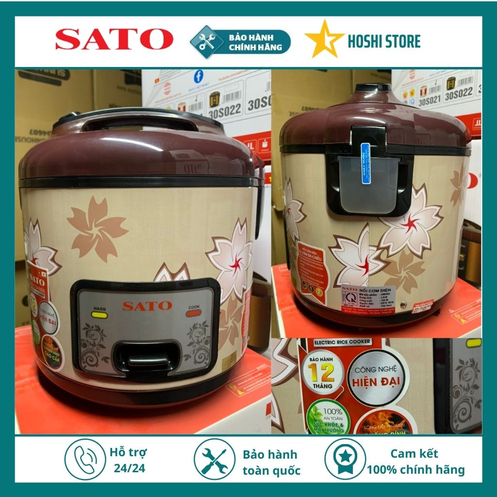 Giới thiệu [Mã ELHADEV giảm 4% đơn 300K] Nồi cơm điện 1.8L SATO Việt Nhật SATO 18B052 1.8L