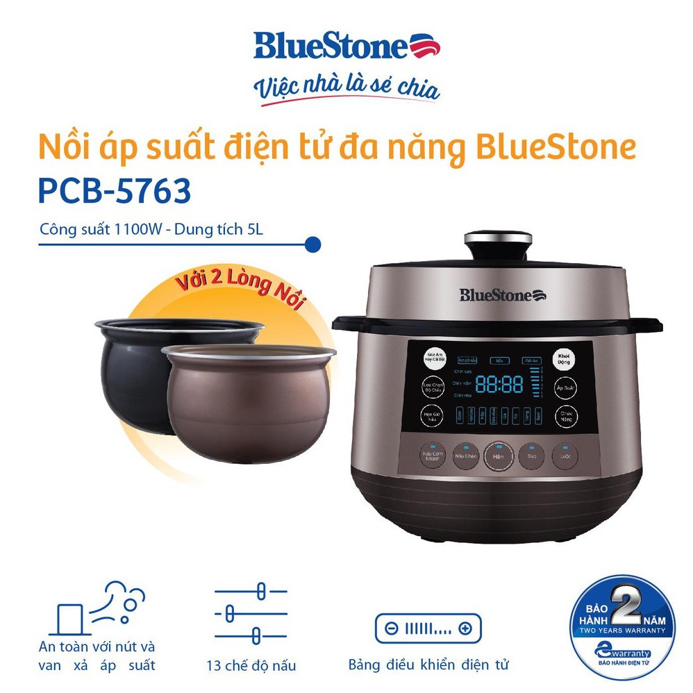 Thiết Bị Điện Gia Dụng > Đồ gia dụng nhà bếp > Nồi áp suất || [Mã 44ELSALE2 giảm 7% đơn 300K] Nồi áp suất BlueStone PCB-5763 Dung Tích 5L- [BẢO HÀNH CHÍNH HÃNG]Còn hàng