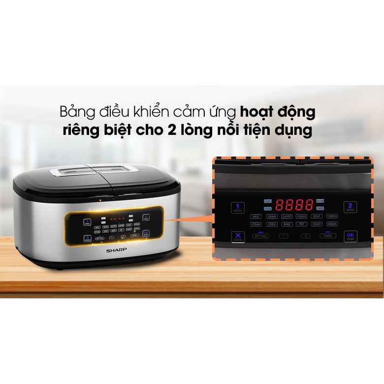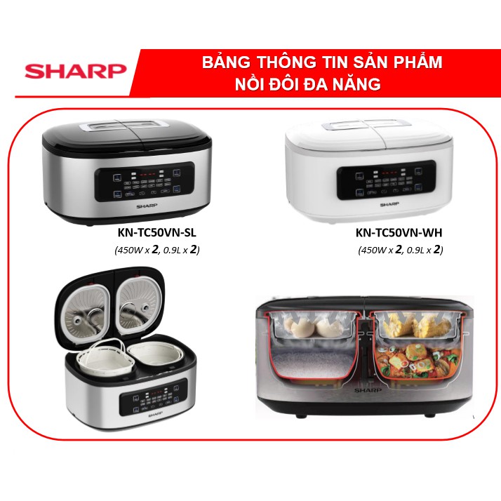 Giới thiệu Nồi Cơm 2 Ngăn Đa Năng Sharp 1.8 lít KN-TC50VN-SL/WH Công suất 900W (mỗi bên 450W)