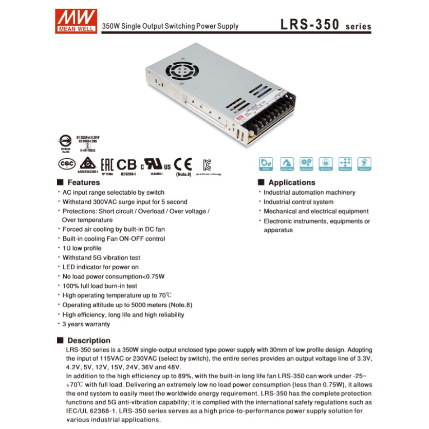 Thương hiệu: Mean Well | Xem thêm các sản phẩm Nguồn máy tính của Mean WellMô tả ngắn