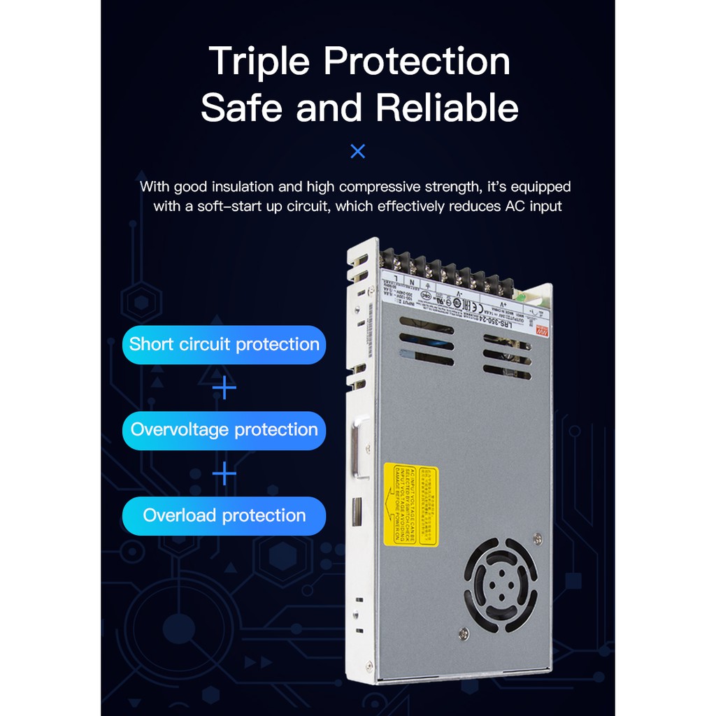 Nguồn Meanwell 350W 24V Ultra-thin Switching Power Supply_Vỏ dày và bảo vệ hiệu quả: