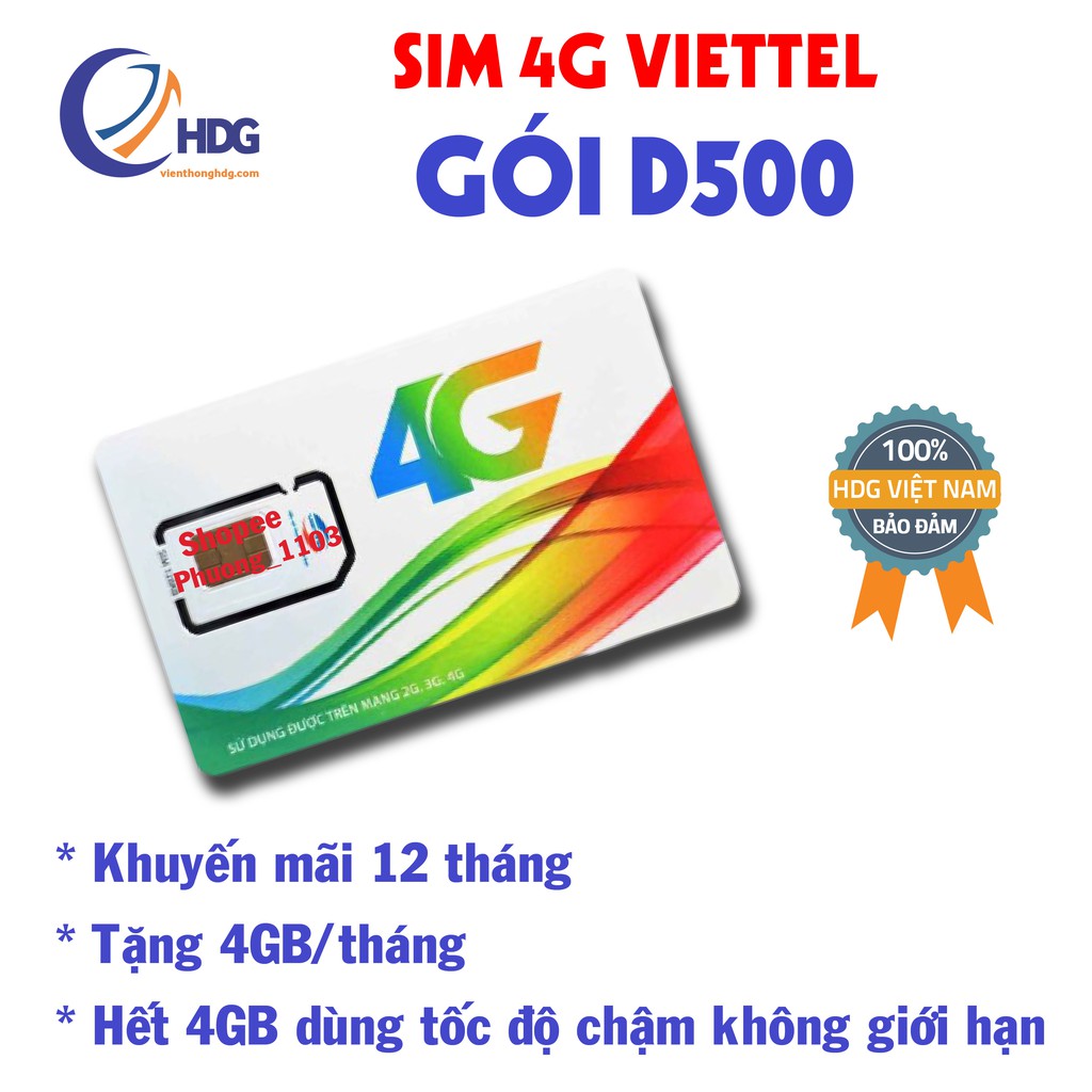 Điện Thoại & Phụ Kiện > Thẻ sim || [Mã 55ELSALE1 giảm 7% đơn 300K] Sim 4g viettel D500 trọn gói 4gb/tháng/12 tháng không cần nạp thẻCòn hàng