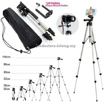 - Chân máy đa năng Tripod với khả năng điều chỉnh chiều cao một cách linh hoạt từ 35 cm đến 110 cm để bạn thoải mái chụp ảnh ở nhiều góc độ khác nhau.Sản phẩm làm bằng inox và nhựa cao cấp với kiểu dáng hiện đại và nhỏ gọn, có thể dễ dàng mang theo khi đi du lịch, dã ngoại... Trục giữa linh hoạt có thể xoay lên, xuống và xoay tròn 360 độ giúp bạn dễ dàng bắt được những góc hình ưng ý nhất. Đặc biệt bạn được tặng kèm 1 đầu cố định điện thoại và máy ảnh giúp cho bạn có thể dễ dàng có được những bức ảnh tuyệt đẹp cùng gia đình, bạn bè...