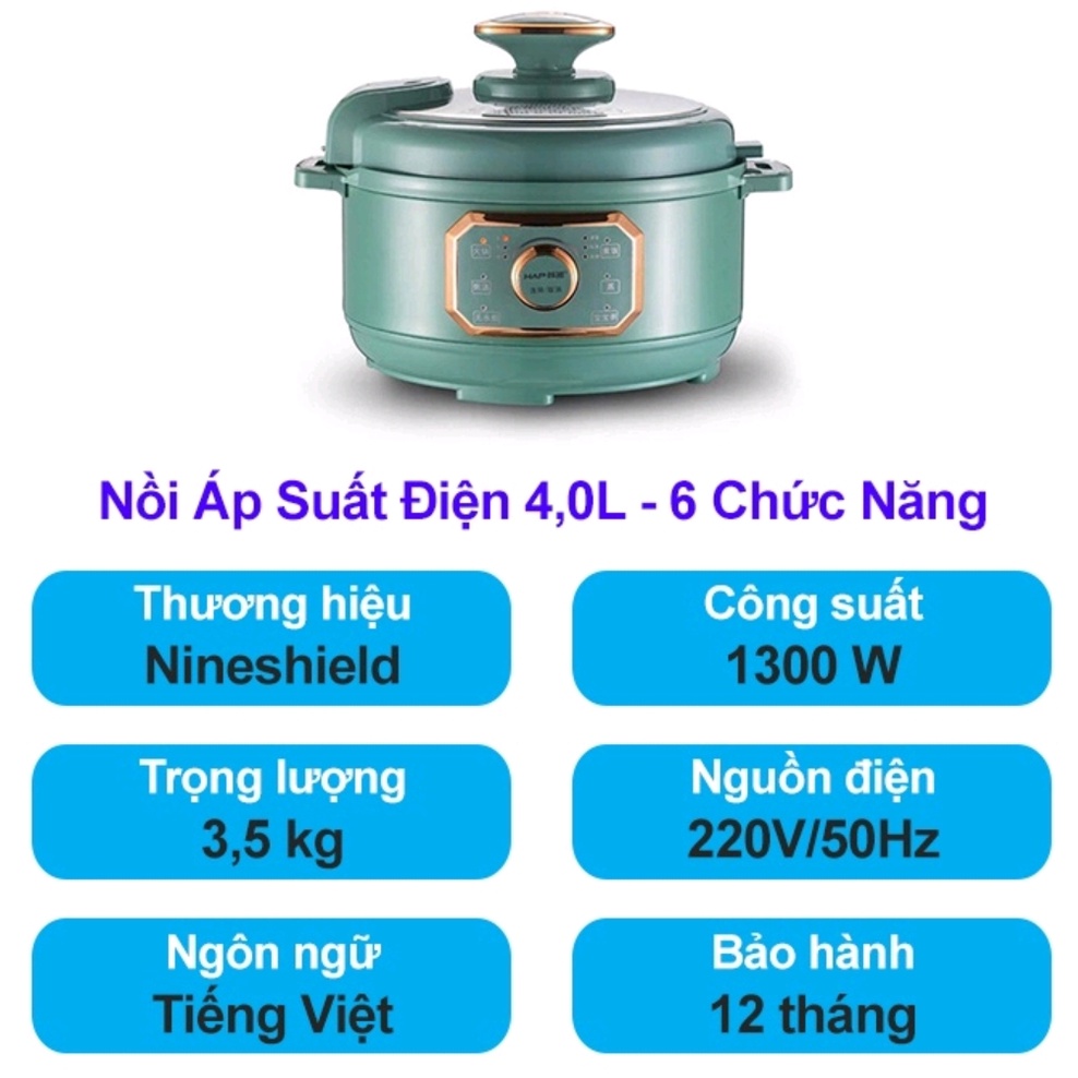 Giới thiệu [Mã ELHADEV giảm 4% đơn 300K] [Free ship]Nồi Áp Suất Điện Đa Năng Nineshield 5L : 6 chế độ- Mẫu mới nhất 2021