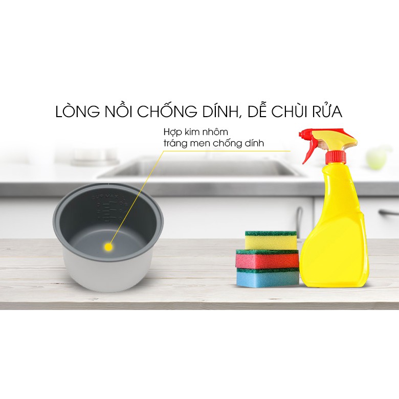 Đặc điểm nổi bậtLòng nồi cơm điện bằng hợp kim nhôm chống dính dễ vệ sinh.
