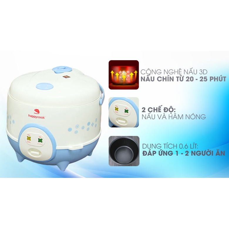 Thiết Bị Điện Gia Dụng > Đồ gia dụng nhà bếp > Nồi cơm điện || [Mã ELHADEV giảm 4% đơn 300K] Nồi Cơm Điện Happycook 0.6 lít HC-60Còn hàng