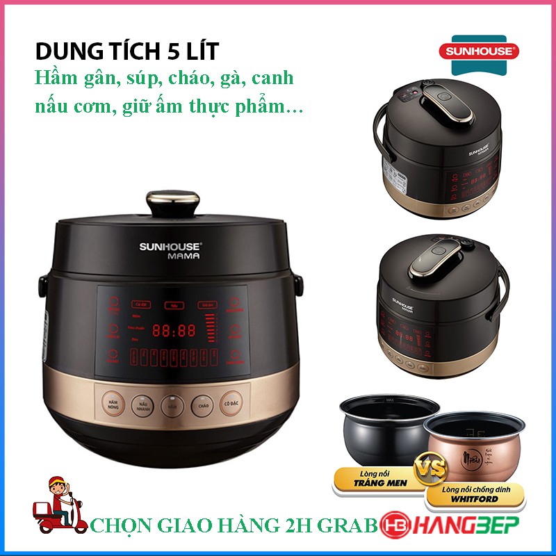 ✅ Nồi áp suất điện tử SUNHOUSE MAMA SHD1586B với công suất lớn 1100W cùng nhiều chế độ nấu khác nhau, giúp bạn có thể nấu được nhiều món như hầm gân, súp, cháo, gà, canh...