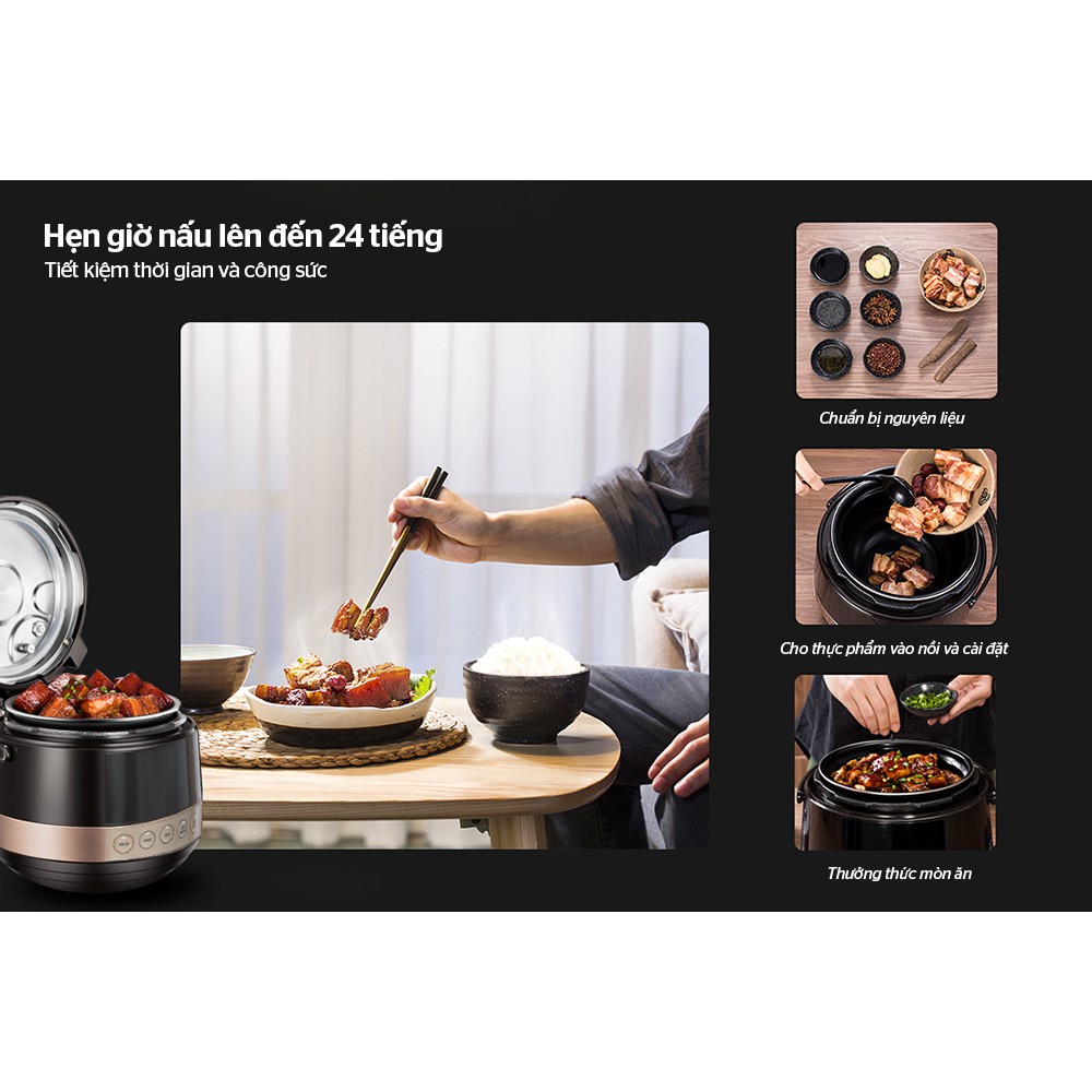 ✅ Sản phẩm có thể hẹn giờ nấu trước 24 tiếng, để bạn có món ngon mọi lúc. Ví dụ, nếu muốn có cháo nhừ ăn sáng, bạn cho nguyên liệu vào nồi lúc 21h tối hôm trước và hẹn 10 tiếng, nồi sẽ tự điều chỉnh nhiệt độ và công suất phù hợp để 8h sáng hôm sau có cháo chín nhừ nóng hổi.