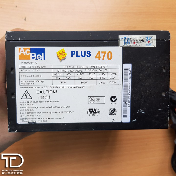 Nguồn công suất thực Acbel E2 Plus 470 cũ dây bọc lưới dài