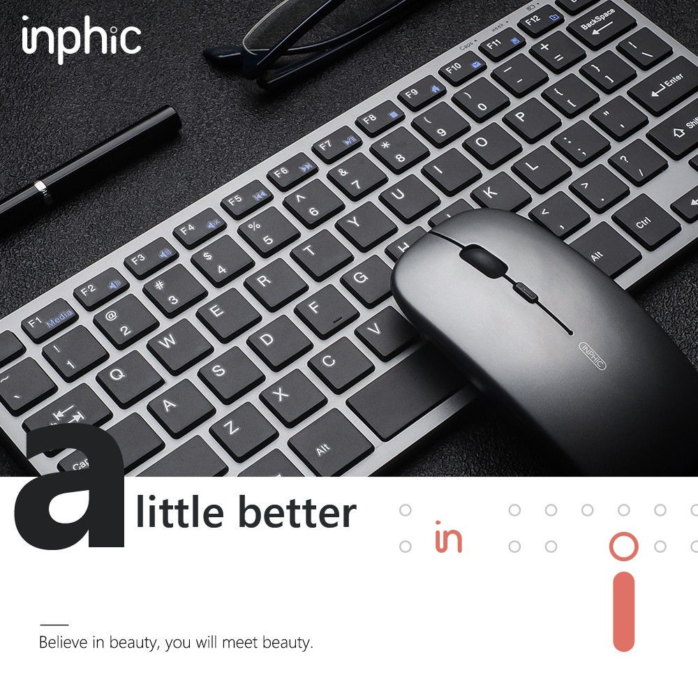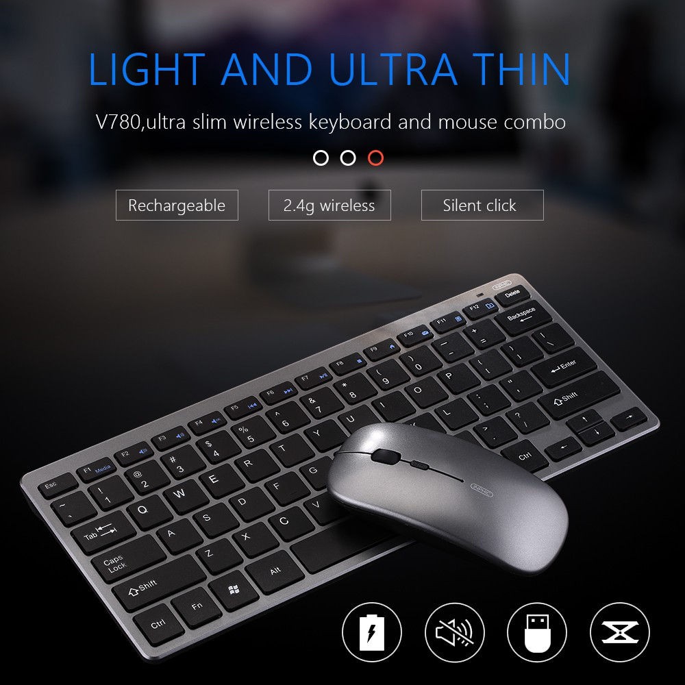 Combo Bàn Phím Và Chuột Không Dây Inphic V780 Siêu Mỏng và gọn nhẹ cho máy tính bảng