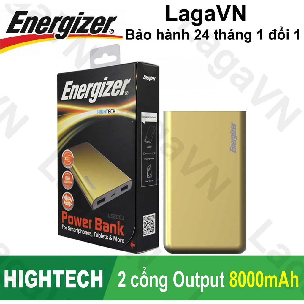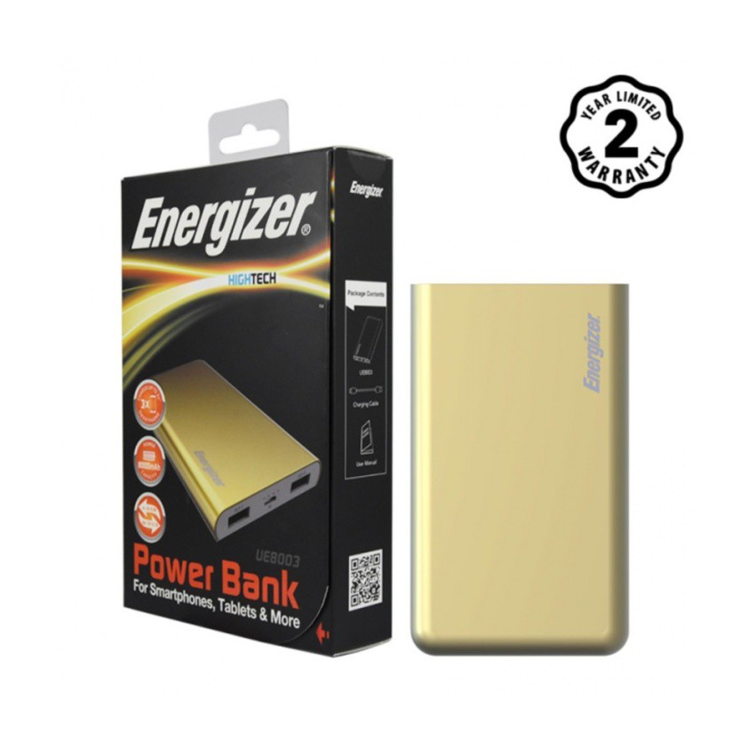 Điện Thoại & Phụ Kiện > Phụ kiện > Sạc dự phòng & Pin > Sạc dự phòng || [Mã 55ELSALE1 giảm 7% đơn 300K] Pin sạc dự phòng Energizer 8000mAh Li-Po 2 cổng Output - UE8003 (Vàng Đồng)Còn hàng