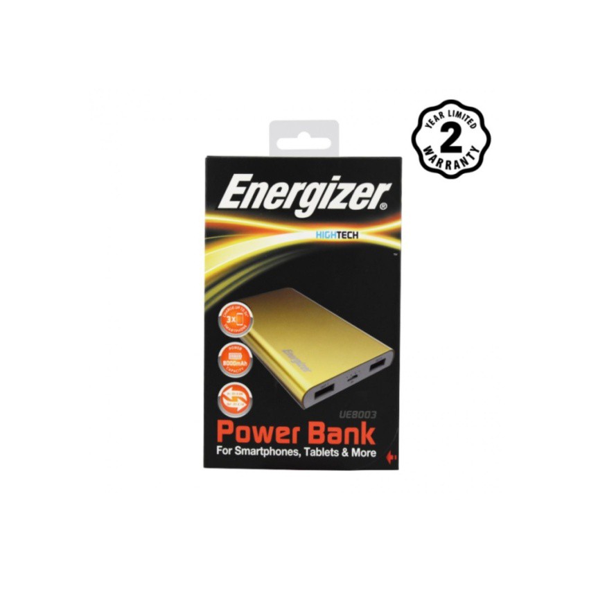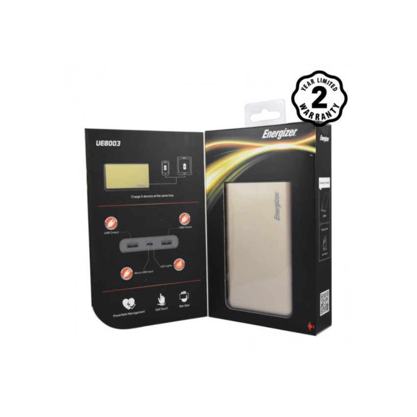 Pin sạc dự phòng Energizer 8000mAh Li-Po 2 cổng Output - UE8003 (Vàng Đồng)
