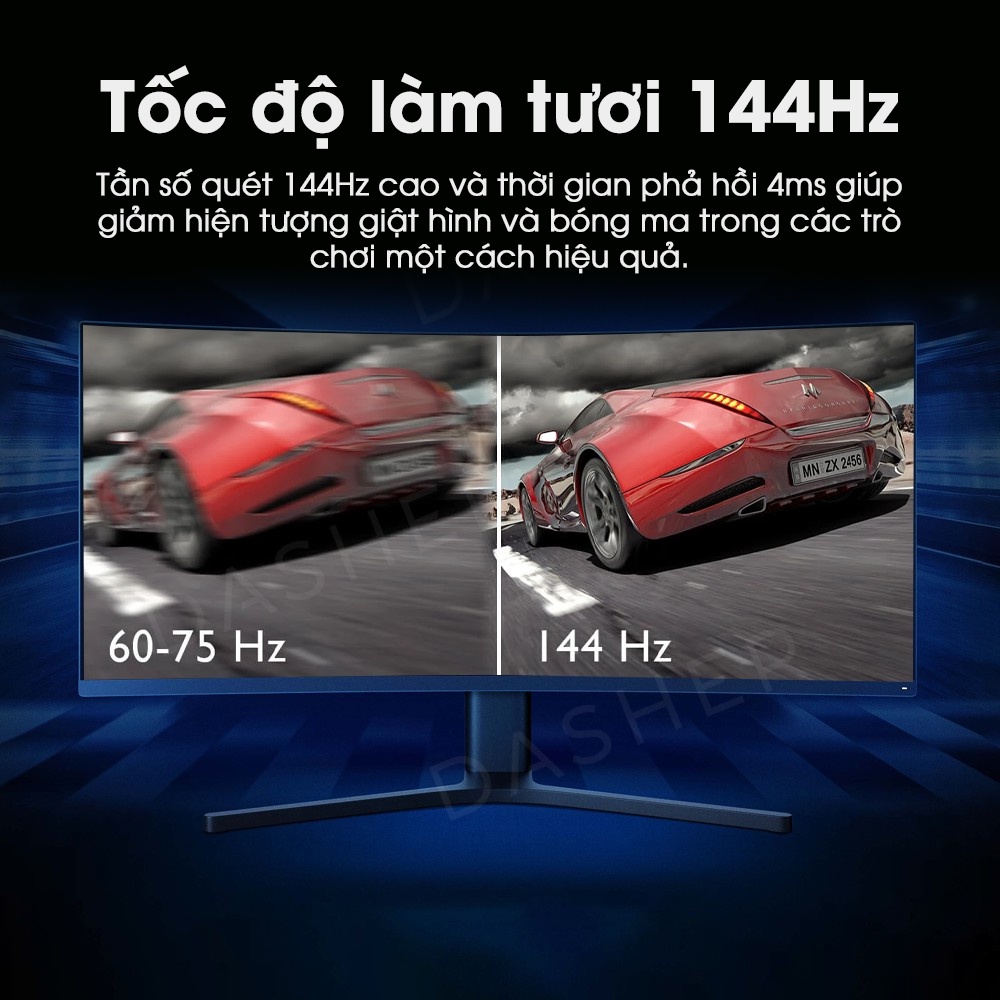 - Tốc độ làm mới cao 144Hz - Tần số quét 144hz cao và thời gian phản hồi 4ms giúp giảm hiện tượng giật hình và bóng ma trong các trò chơi một cách hiệu quả.