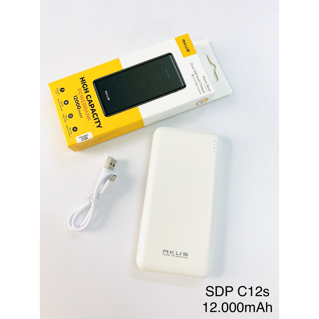 Điện Thoại & Phụ Kiện > Phụ kiện > Sạc dự phòng & Pin > Sạc dự phòng || [Mã 77ELSALE hoàn 7% đơn 300K] [ Bảo Hành 1 Năm ] Pin dự phòng Akus 12.000 mAh - C12sCòn hàng