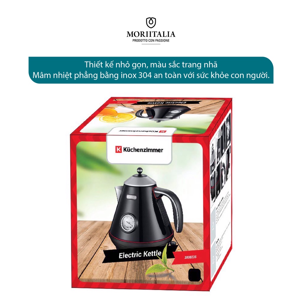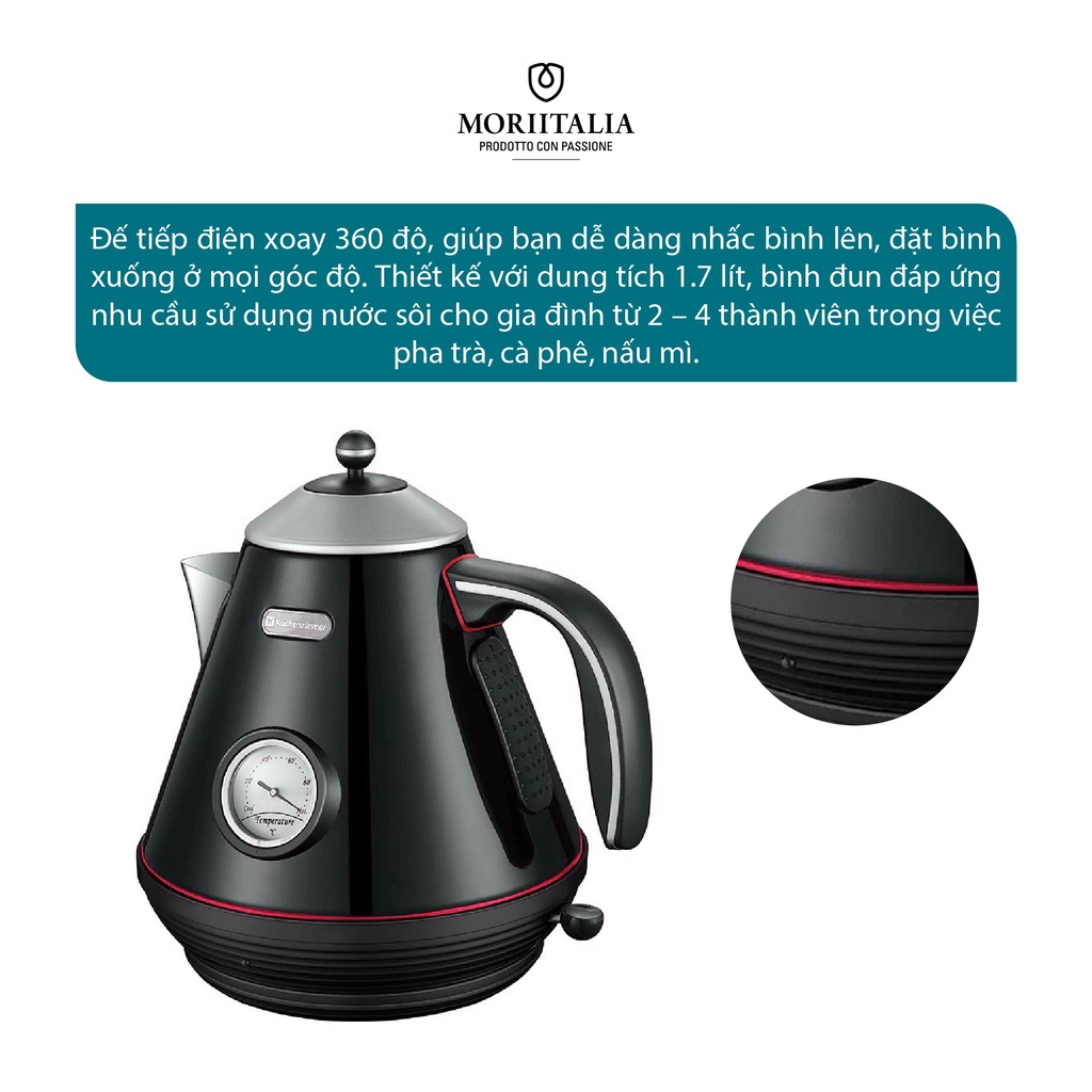 Giới thiệu [Mã BMBAU300 giảm 7% đơn 499K] Ấm Đun Nước Kuchenzimmer 1.7 lít nấu siêu tốc đa năng màu đen Moriitalia 3000235
